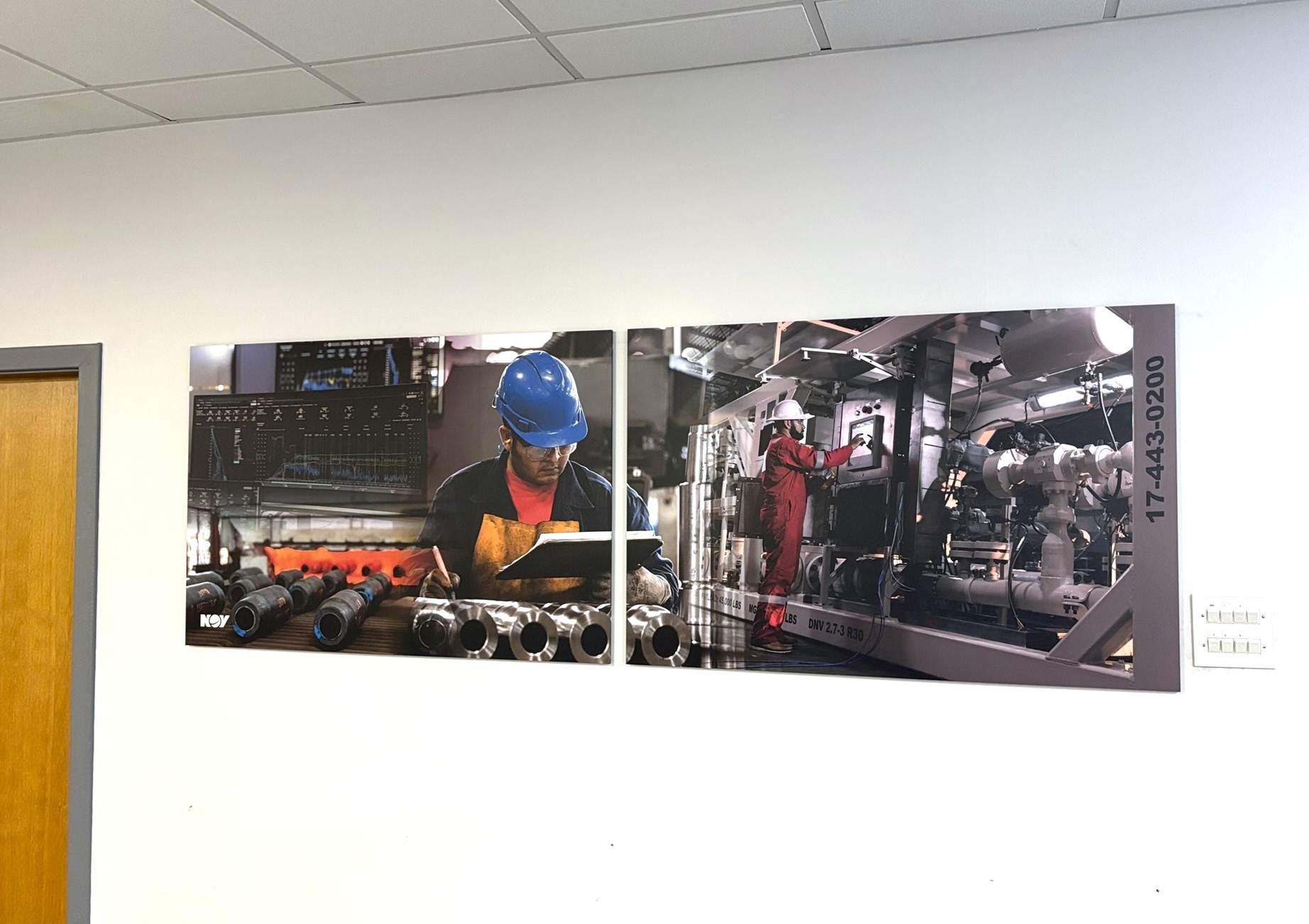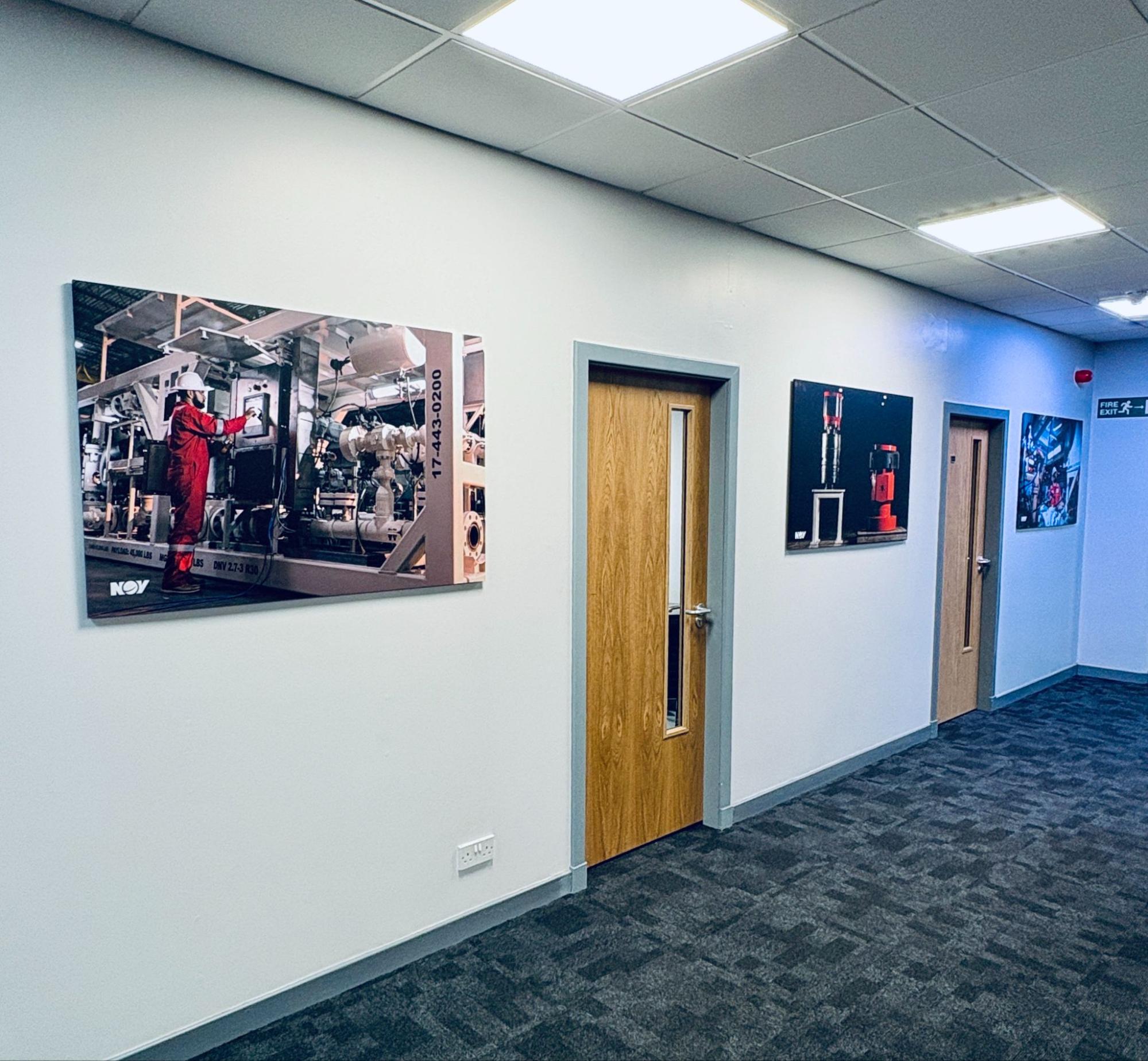 Hallways and stairwells played host to striking prints that showcased NOV’s global operations and reinforcing brand identity throughout the office.