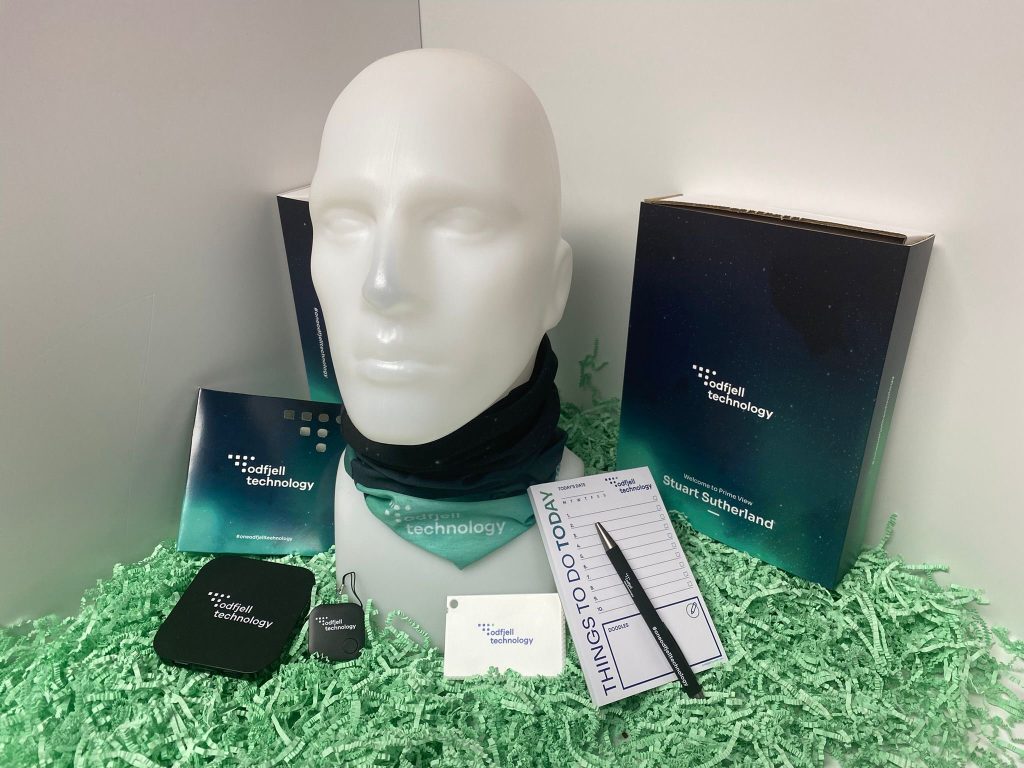 Caption: Take a look at these winter packs we created for Odfjell Technology. Featuring a Northern Lights theme, these packs were gifted to Odfjell’s staff ahead of its new office move and featured essential winter-themed items, including a snood, an ice scraper, and more.