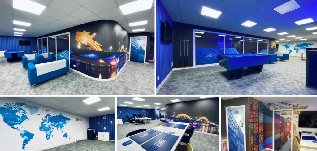 Our tenant Cardinal Global Logistics was looking for a new concept to visually enhance its Aberdeen office space. Collaborating with its team, we took inspiration from its shipping container service offering and incorporated it into the design.