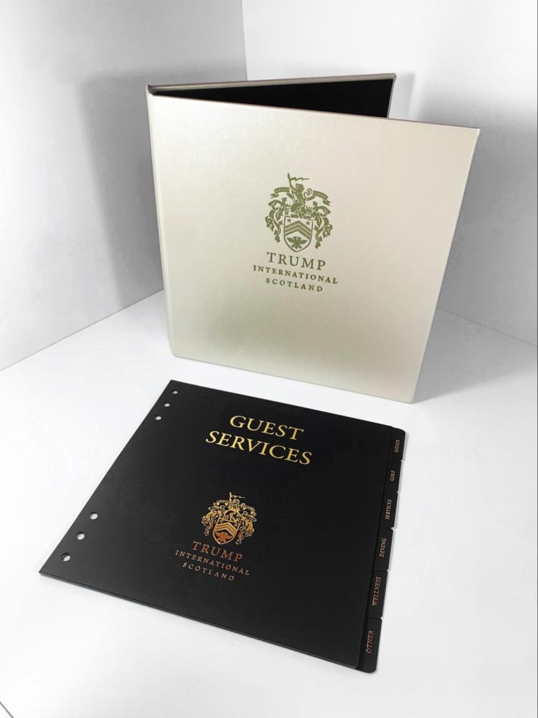 We absolutely loved working with Trump International Scotland to produce high-end tab dividers for its guest services documentation.