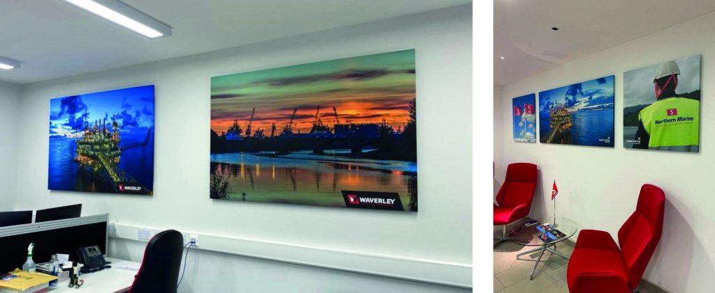 Adding vinyl wrapped boards to your office is the perfect way to enhance the space with strong visuals that incorporate the company’s branding. Thanks to their sturdy structure and large size, they make a bold statement and offer a durable solution that can be used in a number of different ways. From brightening up the office with imagery related to your business or geographical area, to showcasing products and services, these boards can help display key parts of your business throughout your office interior.