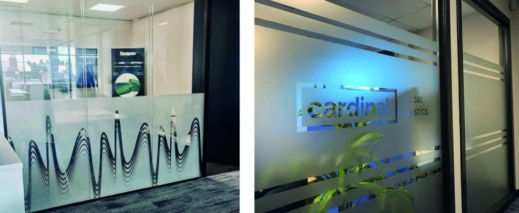 Etched glass vinyl helps diffuse or soften light without fully obscuring it, offering a great solution for added privacy in meeting rooms and offices where the rest of the workspace is open plan. The vinyl can be shape cut to form logos, branding elements or different patterns, creating a strong and professional impression for visitors and clients.
