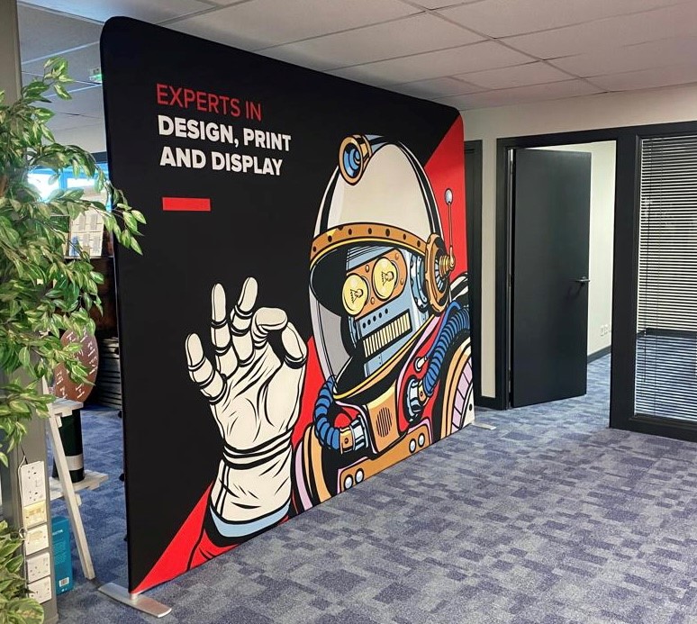 Adding fabric banners as backdrops or into display areas is a great way to add your brand’s personality into your office. They make a striking impression with visitors and can be used long-term thanks to their machine washable material and durable fabric. This material also lends itself well to display banners as it leaves you with virtually no light reflection unlike alternative displays, allowing you to show off your brand artwork more effectively.