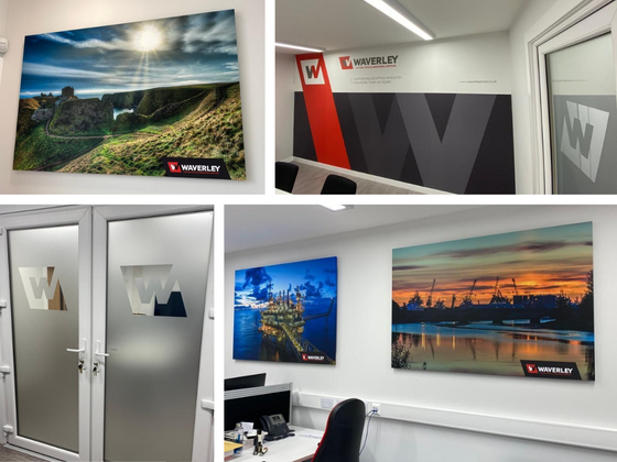 These internal displays were designed, produced and installed for Waverley Cutting Tools using wall paper, glass etch and MDF wraps, creating a striking impact for anyone stepping inside their offices.