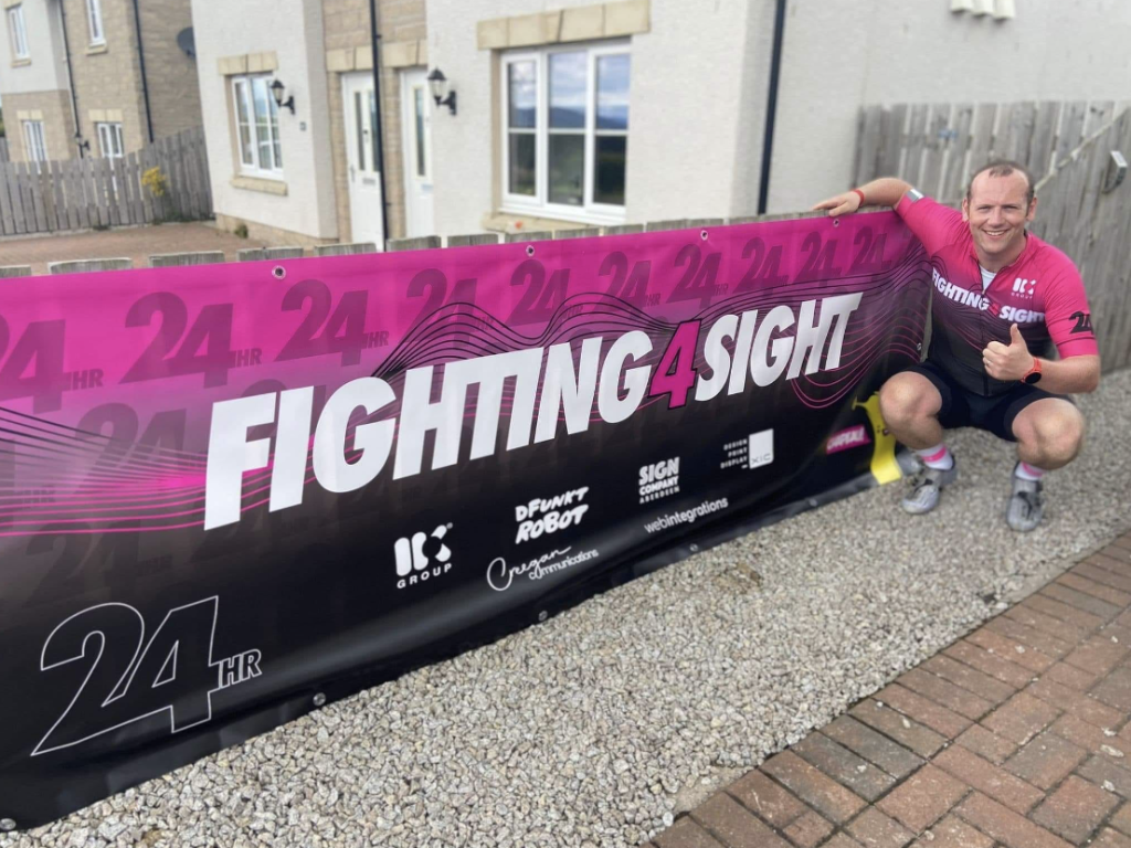 Our good friend Neil Shepherd cycled for an incredible 18 hours non stop this month in aid of Fighting for Sight. His sister has suffered from several serious eye conditions over the past 12 years which have threatened her vision permanently, but with the help of the charity and amazing staff at Aberdeen Eye Clinic at ARI, she is able to manage her symptoms more effectively.